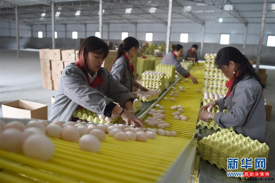 在貴州省畢節(jié)市七星關(guān)區(qū)五里坪村,當(dāng)?shù)剞r(nóng)戶在一個屬于精準(zhǔn)扶貧項目的養(yǎng)雞場內(nèi)分揀雞蛋(2015年11月15日攝)。畢節(jié)市自2014年開始“私人訂制”式精準(zhǔn)扶貧工作,根據(jù)當(dāng)?shù)刎毨魧嶋H情況為其制定扶貧方案,扶貧變“輸血”為“造血”。黨的十八大以來,以習(xí)近平同志為總書記的黨中央高瞻遠矚、深謀遠慮,以高度的政治感、使命感和責(zé)任感,把扶貧開發(fā)工作提升至治國理政新高度,廣泛凝聚社會各界力量,推進實施精準(zhǔn)扶貧方略,為到2020年全面建成小康社會奠定堅實基礎(chǔ)。按照中央部署,通過產(chǎn)業(yè)扶持、轉(zhuǎn)移就業(yè)、易地搬遷、政策兜底等方式,到2020年將實現(xiàn)7017萬農(nóng)村貧困人口脫貧目標(biāo)。新華社記者 潘昱龍 攝