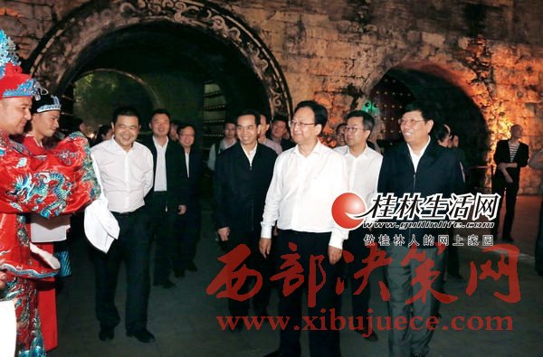 景俊海一行還來到正陽東巷歷史文化街區(qū)進行調(diào)研。經(jīng)過修繕改造后的正陽東巷歷史文化街區(qū),青磚黛瓦、古色古香,夜晚大紅燈籠高高掛起,許多中外游客徜徉其間,仿佛有種時光穿梭之感。景俊海一行沿著古樸的巷子,認真聽取了關(guān)于東巷改造情況介紹,并饒有興趣地參觀了保護修繕后的馬啟邦舊居、岑氏公保弟舊址等。他還登上恢復重建的桂林逍遙樓,一邊參觀一邊聽取逍遙樓的歷史典故、重建情況等介紹,對桂林市委、市政府實施“尋找桂林文化的力量,挖掘桂林文化的價值”戰(zhàn)略,精心設計、挖掘和保護桂林歷史文化表示充分肯定。景俊海一行還前往愚自樂園法國地中海俱樂部桂林度假村、“兩江四湖”環(huán)城水系工程、靖江王府、臨桂新區(qū)“一院兩館”(桂林大劇院、桂林博物館、桂林圖書館)、桂林崇華中醫(yī)文化街等文化項目進行調(diào)研。
