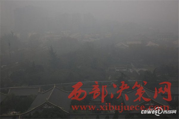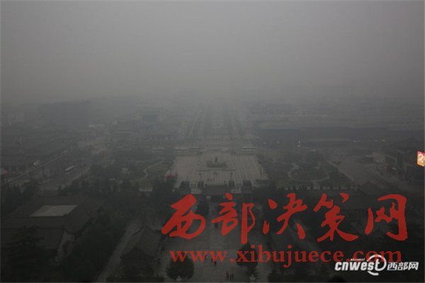 12月20日,西安市空氣質(zhì)量指數(shù)接近500,空氣質(zhì)量嚴(yán)重污染,昨日西安市首次啟動(dòng)重污染天氣Ⅰ級應(yīng)急響應(yīng),今日繼續(xù)執(zhí)行重污染天氣Ⅰ級應(yīng)急響應(yīng),幼兒園、中小學(xué)停課,機(jī)動(dòng)車限行50%。重度霧霾的大雁塔失去了千年古色,稍遠(yuǎn)一點(diǎn)看大雁塔若隱若現(xiàn),再走遠(yuǎn)一點(diǎn)大雁塔在視線中消失。登上大雁塔頂層,從東南西北四個(gè)窗口拍下的照片幾乎一模一樣。