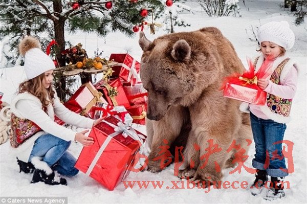 據(jù)英國《每日郵報(bào)》12月22日?qǐng)?bào)道,近日,網(wǎng)上流傳的一些父母讓孩子與灰熊一起拍攝圣誕節(jié)照片的圖片引起了網(wǎng)友們的關(guān)注,據(jù)了解,照片中的兩個(gè)小姑娘名為Alice和Eve,這兩個(gè)可愛的小家伙今年都不到10歲,但是照片中勇敢的她們卻滿心歡喜地和灰熊擁抱拍照。