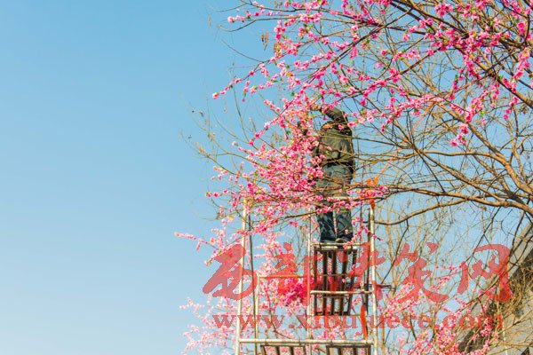 1月16日,在呼和浩特市大南街,工人們正在安裝花燈。農(nóng)歷丁酉年(雞年)春節(jié)即將到來,首府處處年味十足,扮靚城市。