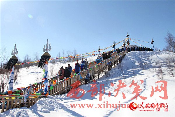 23日上午,阿爾山當(dāng)?shù)氐拿晒抛迥撩駛兩碇⒀b,將羊肉、奶酒、奶食品等祭品匯集于興安敖包前,敬獻(xiàn)藍(lán)色哈達(dá),并繞敖包誦經(jīng),祈求風(fēng)調(diào)雨順、家人安康。