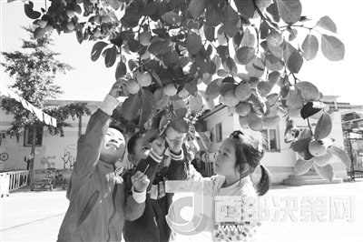我們幼兒園面積大、歷史久,更可貴的是園中百余棵大樹郁郁蔥蔥。這里春日桃李芬芳,夏日楊柳依依,秋日石榴掛滿枝頭,冬日白雪落在柿子上,一處處皆是風(fēng)景。記得南京師范大學(xué)虞永平教授來我園參觀后,對冬季掛在樹上紅彤彤的柿子特別感興趣,覺得這是北方特有的景色,便問道:“柿子樹有幾種?。糠謩e什么時候長果?果實什么時間可以摘呢?”說起來慚愧,雖然園中的柿子樹伴隨我從青蔥歲月到不惑年華,我卻不曾認(rèn)真仔細(xì)地觀察過這柿子樹,只是記得后勤老師一直念叨:“柿子樹寓意事事平安,是北方人對平安、幸福美好日子的一種期待。”