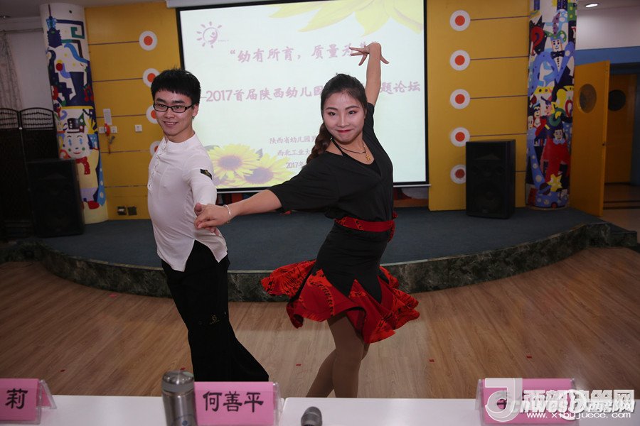 論壇上,西安市浐灞第二幼兒園的謝曉鳴和孩子們帶來的街舞表演點(diǎn)燃了全場(chǎng),讓大家感受到幼兒園男教師的熱情和激情;陜西師范大學(xué)幼兒園的韓凱帶來的鋼琴演奏《一壺美酒》傳達(dá)了深切的情感,讓人回味無窮;西航天鼎保育院的趙棟用挺拔健美的身姿表演的拉丁串燒,展現(xiàn)了生命自信的力量;電信十所幼兒園的孫博一只單簧管演奏,吹出了男教師細(xì)致柔情的一面;西安市雁塔區(qū)第一幼兒園的陳曉峰演唱的《祖國,慈祥的母親》讓我們領(lǐng)略了幼兒園男教師專業(yè)的唱功和對(duì)職業(yè)的自信;西北工業(yè)大學(xué)幼兒園教師董樂帶領(lǐng)小朋友展示了動(dòng)感的啦啦操和籃球活動(dòng),場(chǎng)上的小運(yùn)動(dòng)員自信的運(yùn)球、上籃、投球,矯健的身姿,專注的表情,默契的配合,感染著在場(chǎng)的每一位教師;西安市第五保育院肖波和陜西睿星體育一群陽光帥氣的男教師組織的趣味體能游戲?qū)⒒顒?dòng)氣氛推向了高潮。
