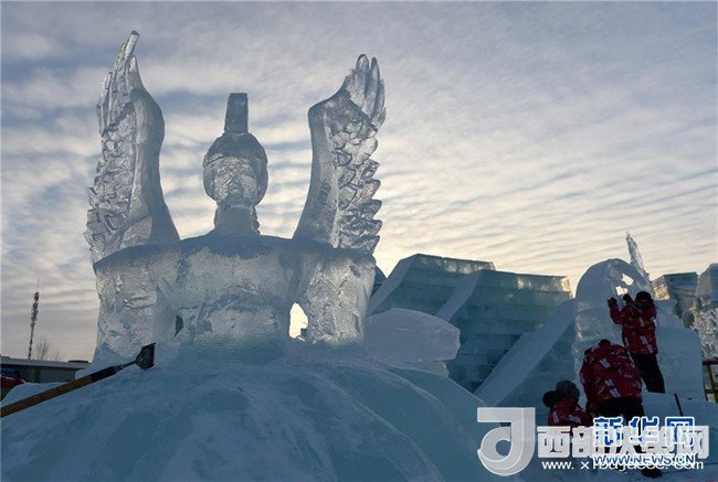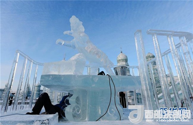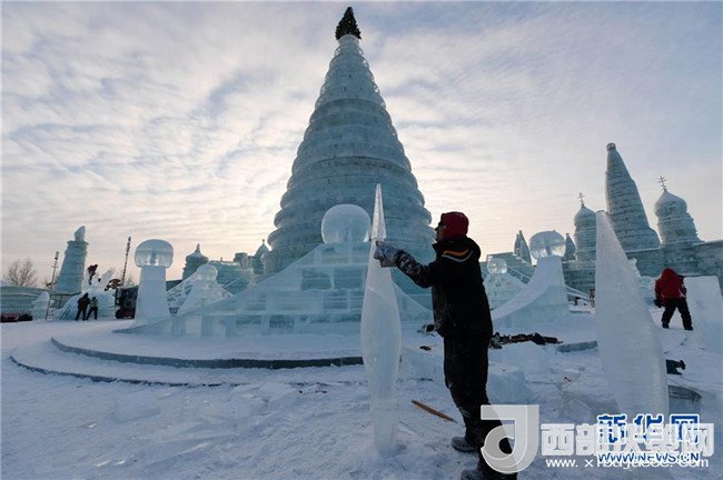 1月3日,在哈爾濱冰雪大世界園區(qū),冰雕選手在進(jìn)行創(chuàng)作。當(dāng)日,在哈爾濱冰雪大世界園區(qū)內(nèi)舉行的國(guó)際組合冰冰雕比賽進(jìn)入第四天。經(jīng)過來(lái)自世界各地的冰雕選手悉心雕琢,一塊塊冰出落成精美的藝術(shù)作品,仿佛晶瑩剔透的出“冰”芙蓉。(記者 王建威 攝)