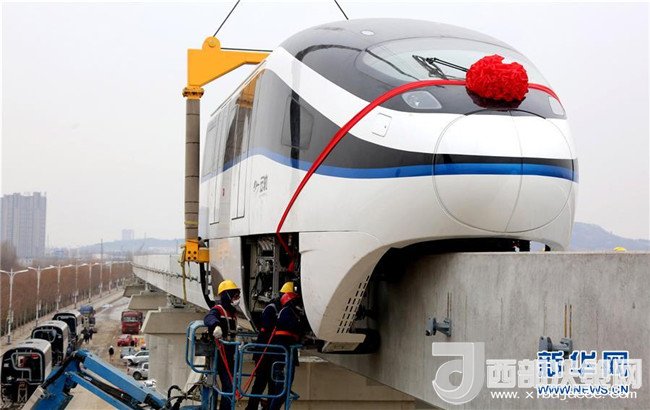 1月3日,在山東省鄒城市,工作人員進(jìn)行旅游云軌“孔孟旅游快線”機(jī)車上梁作業(yè)。當(dāng)日,孔子故里曲阜、孟子故里鄒城之間的云軌“孔孟旅游快線”完成機(jī)車上梁作業(yè)。這條旅游快線串聯(lián)起“三孔”景區(qū)、高鐵曲阜東站和曲阜南站、九龍山景區(qū)、孟廟孟府景區(qū)等。云軌是中國(guó)首條自主知識(shí)產(chǎn)權(quán)的跨座式單軌列車,類似于“空中小火車”,最高時(shí)速可達(dá)80公里。(呂衛(wèi)鋒 攝)
