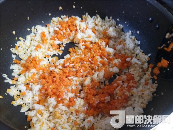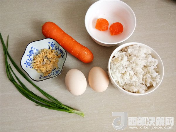 主料:米飯 1碗 咸蛋 2個 蝦皮 3克 胡蘿卜 80克 雞蛋 2個