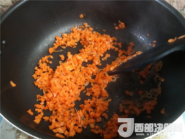 9.加入胡蘿卜翻炒。