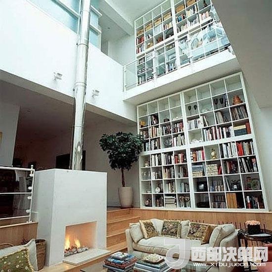 挑高的躍層空間,書(shū)架從上至下占據(jù)了兩層空間,顯得氣勢(shì)宏大,令人嘆服。