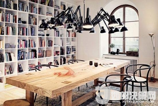 布滿整面墻的方格書(shū)架,不但空間充足而且便于分類(lèi)。房間中央是一張大工作臺(tái),工作、讀書(shū)都可兼顧,頗有幾分家庭圖書(shū)館的氣勢(shì)。