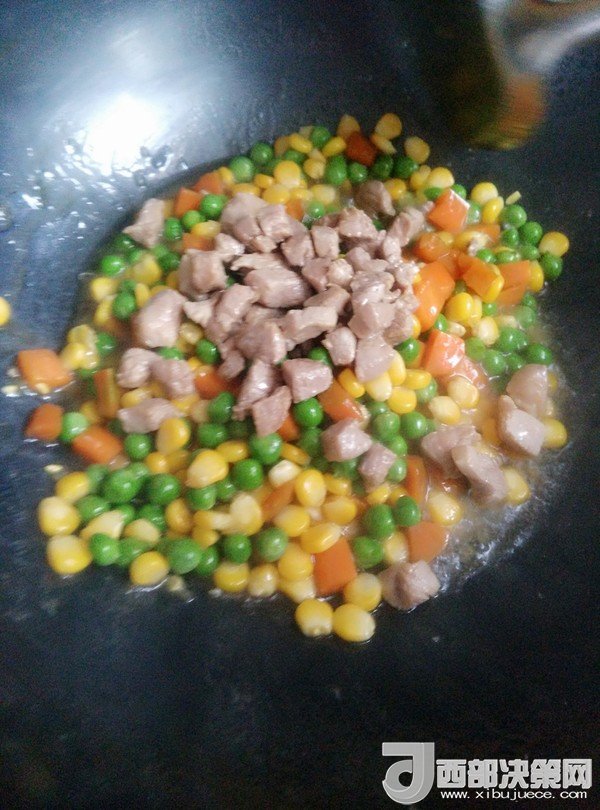 主料:胡蘿卜 1根 玉米 1根 豌豆 300克 里脊肉 100克