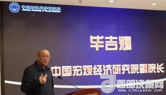 中國宏觀經(jīng)濟(jì)研究院副院長畢吉耀在研討會上發(fā)表演講。圖片來源: 財(cái)政智庫動態(tài)微信號