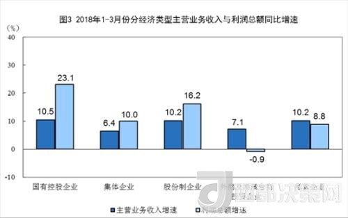 統(tǒng)計局數(shù)據(jù)顯示,1-3月份,規(guī)模以上工業(yè)企業(yè)中,國有控股企業(yè)實現(xiàn)利潤總額4762.9億元,同比增長23.1%;集體企業(yè)實現(xiàn)利潤總額57.3億元,增長10%;股份制企業(yè)實現(xiàn)利潤總額10889.3億元,增長16.2%;外商及港澳臺商投資企業(yè)實現(xiàn)利潤總額3738億元,下降0.9%;私營企業(yè)實現(xiàn)利潤總額4316.8億元,增長8.8%。