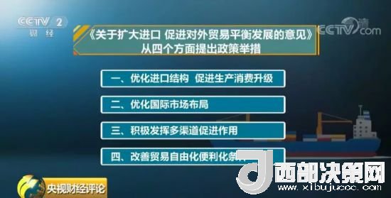 日前,國(guó)務(wù)院辦公廳轉(zhuǎn)發(fā)商務(wù)部等20個(gè)部門《關(guān)于擴(kuò)大進(jìn)口 促進(jìn)對(duì)外貿(mào)易平衡發(fā)展的意見(jiàn)》?!兑庖?jiàn)》從四個(gè)方面提出政策舉措:一是優(yōu)化進(jìn)口結(jié)構(gòu),促進(jìn)生產(chǎn)消費(fèi)升級(jí);二是優(yōu)化國(guó)際市場(chǎng)布局;三是積極發(fā)揮多渠道促進(jìn)作用;四是改善貿(mào)易自由化便利化條件。其中,在優(yōu)化進(jìn)口結(jié)構(gòu)方面,提出了四個(gè)方向,包括:支持關(guān)系民生的產(chǎn)品進(jìn)口、積極發(fā)展服務(wù)貿(mào)易、增加有助于轉(zhuǎn)型發(fā)展的技術(shù)裝備進(jìn)口、增加農(nóng)產(chǎn)品和資源性產(chǎn)品進(jìn)口。