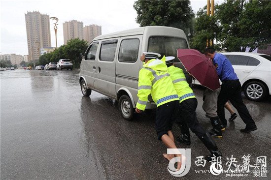 市民抓拍!云南昭通“赤腳交警”冒雨幫市民推車(chē)