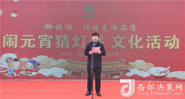 陜西柳林酒業(yè)有限公司副總經(jīng)理周峰發(fā)表講話并向鳳翔父老送上新春祝福和節(jié)日的問候。“三陽開國泰,美哉柳林酒。今天是正月十五,首先我代表柳林酒業(yè)董事長付小銅先生、總經(jīng)理柳林先生及全體員工給現(xiàn)場的父老鄉(xiāng)親、朋友們拜個晚年,祝各位家庭好、事業(yè)好、身體好心情好、運氣好、福氣好、財氣好、愛情好、朋友好、新的一年一切都好!柳林酒業(yè)主辦的以傳播柳林美酒品質(zhì)為主題的“鬧元宵有獎猜燈謎文化活動”,在此,對前來的各位父老鄉(xiāng)親,各界朋友表示衷心的感謝。本次猜謎活動獎品總價值15萬元,共設(shè)1000條謎語,只要猜中謎底,關(guān)注“柳林酒業(yè)”,即可獲得獎品?,F(xiàn)場更有國家級評酒大師親臨現(xiàn)場,品柳林美酒,共同傳播美酒文化和歌舞表演環(huán)節(jié),相信大家一定會不虛此行,度過一個難忘的元宵佳節(jié)。