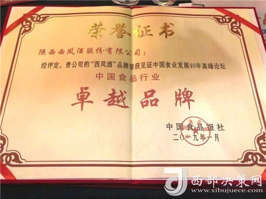 西鳳酒獲得 “中國食品行業(yè)卓越品牌”光榮稱號