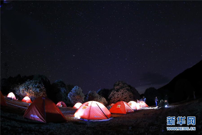 4月23日,來自攀枝花市的戶外愛好者在龍頭山露營。 近日,四川省攀枝花市鹽邊縣龍頭山十余萬畝野生杜鵑花盛開,吸引省內(nèi)外游客前來登山賞花。 龍頭山位于四川省攀枝花市鹽邊縣北部的紅寶苗族彝族鄉(xiāng)境內(nèi),這里的野生杜鵑花花期為2月至5月。 新華社記者 江宏景 攝