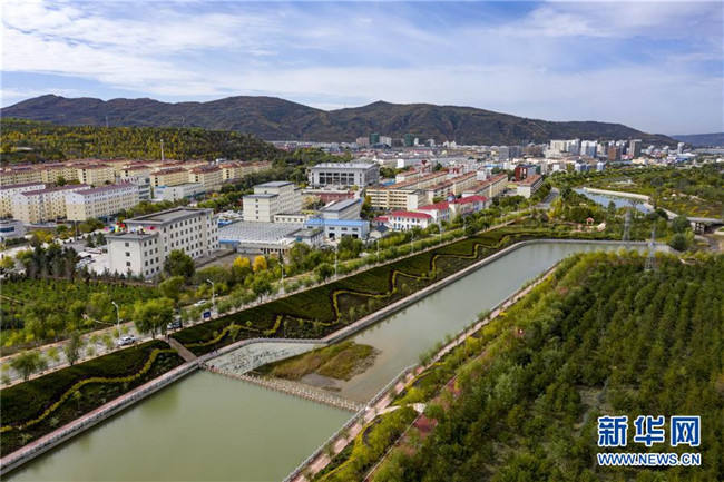 經(jīng)過(guò)綜合治理后的茹河成為寧夏固原市彭陽(yáng)縣的一道新風(fēng)景(10月12日無(wú)人機(jī)拍攝)。 新華社記者 馮開(kāi)華 攝