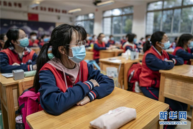 3月23日,昆明市第一中學(xué)高三年級(jí)學(xué)生在教室里上疫情防控第一課。新華社記者 江文耀 攝