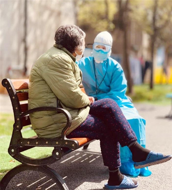 8艙有一位80多歲的老奶奶,中午出來(lái)遛彎時(shí)看到了醫(yī)療隊(duì)護(hù)士萬(wàn)珍妮,主動(dòng)過(guò)來(lái)攀談。“你是陜西來(lái)的?我看你衣服上寫著西安幾個(gè)字了。”“是啊,奶奶,我們是西安國(guó)際醫(yī)學(xué)中心醫(yī)院來(lái)武漢支援的。”萬(wàn)珍妮通過(guò)和奶奶聊天得知,奶奶的父親以前在寶雞工作過(guò)很長(zhǎng)時(shí)間。“我也算半個(gè)陜西人了。沒(méi)想到在這里還能見(jiàn)到“老鄉(xiāng)”!感謝你們!”奶奶感覺(jué)很親切,和萬(wàn)珍妮話起了“家常”。