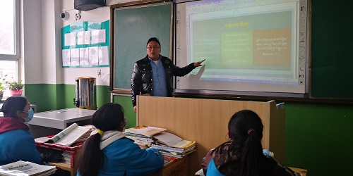 公保多杰在玉樹州民族中學上課。 楊陽攝