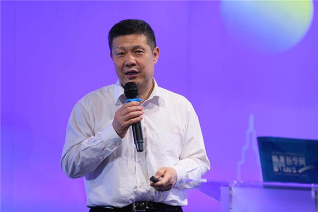 圖為中國社會科學院經(jīng)濟研究所所長黃群慧演講