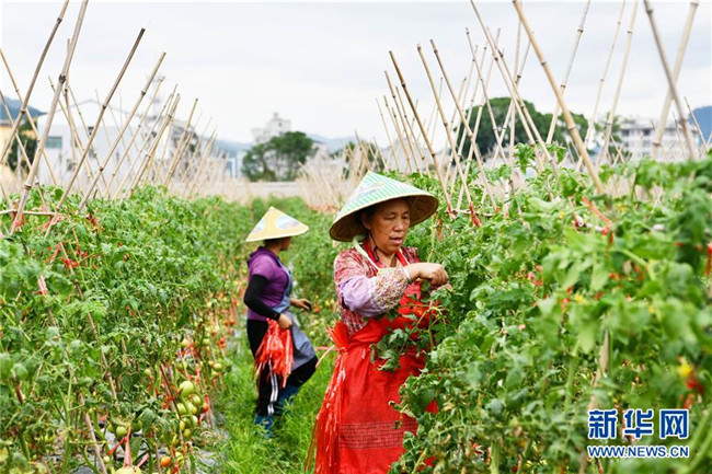 6月1日,農民在貴州省榕江縣車江壩區(qū)管理西紅柿。新華社記者 楊文斌 攝