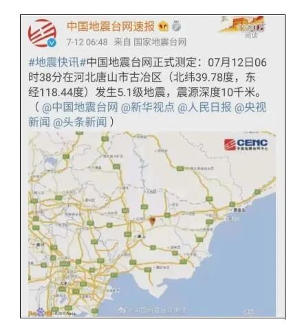 7月12日6時38分,河北唐山古冶區(qū)(北緯39.78度,東經(jīng)118.44度)發(fā)生5.1級地震,震源深度10公里,京津冀多地區(qū)震感明顯。同日,唐山市應(yīng)急管理局回應(yīng)稱,此次地震屬于1976年唐山大地震的余震。