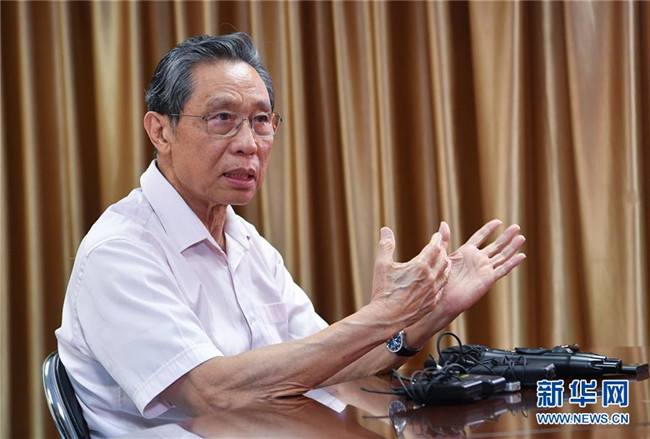 29日在廣州醫(yī)科大學附屬第一醫(yī)院,中國工程院院士、國家呼吸系統(tǒng)疾病臨床醫(yī)學研究中心主任、廣州醫(yī)科大學呼吸內(nèi)科教授鐘南山接受新華社采訪,談對香港疫情形勢的判斷,以及對防控疫情的建議。