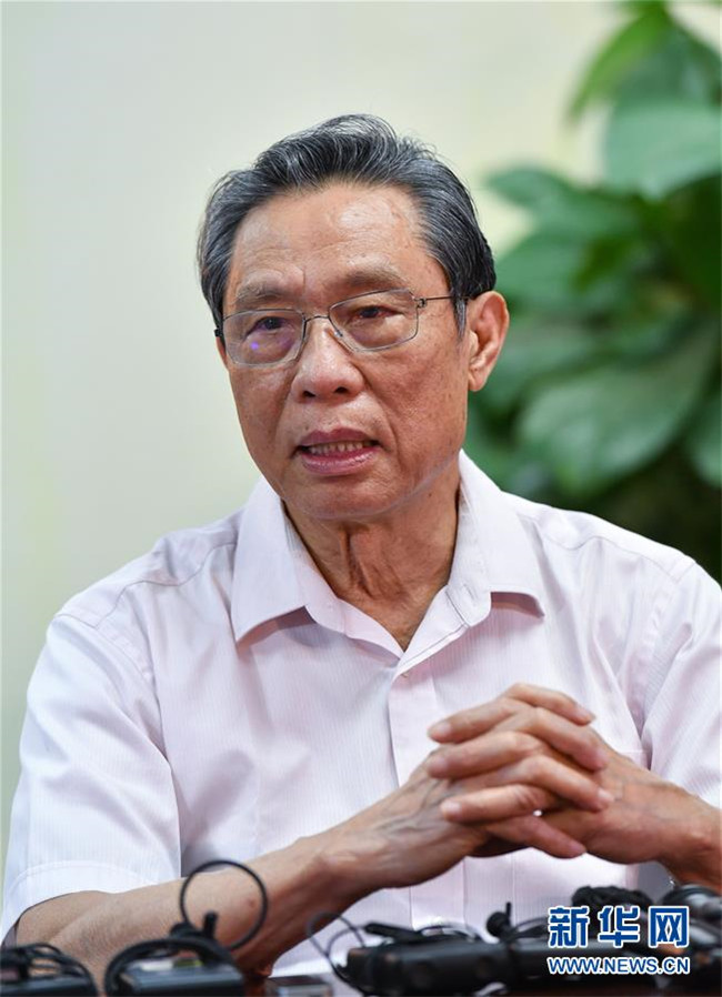 7月29日,中國工程院院士、國家呼吸系統(tǒng)疾病臨床醫(yī)學研究中心主任、廣州醫(yī)科大學呼吸內(nèi)科教授鐘南山在廣州醫(yī)科大學附屬第一醫(yī)院接受新華社采訪,談對香港疫情形勢的判斷,以及對防控疫情的建議。 新華社記者 劉大偉 攝