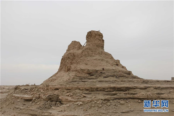 這是樓蘭古城內(nèi)的佛塔遺址(2019年11月11日攝)。新華社發(fā)(中鐵西北科學(xué)研究院有限公司提供)