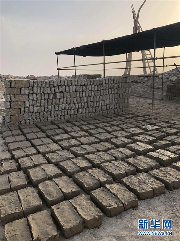 工作人員選取樓蘭古城外圍的土料制備的土坯(6月23日攝,手機(jī)照片)。新華社發(fā)(中鐵西北科學(xué)研究院有限公司提供)