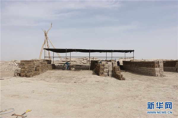 這是搶險加固中的樓蘭古城三間房遺址(7月27日攝,手機(jī)照片)。新華社發(fā)(中鐵西北科學(xué)研究院有限公司提供)