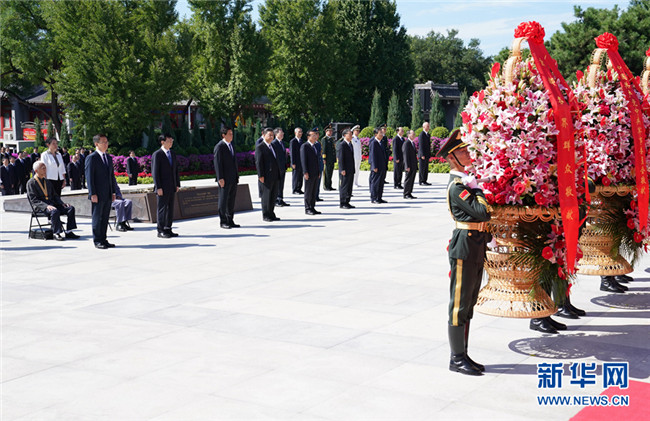 紀(jì)念中國(guó)人民抗日戰(zhàn)爭(zhēng)暨世界反法西斯戰(zhàn)爭(zhēng)勝利75周年向抗戰(zhàn)烈士敬獻(xiàn)花籃儀式在京舉行 習(xí)近平李克強(qiáng)栗戰(zhàn)書汪洋王滬寧趙樂際韓正王岐山出席儀式
