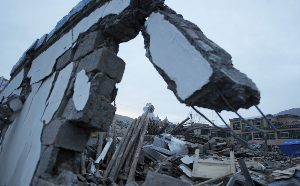↓ 圖為2010年4月玉樹地震后的玉樹扎西大同村。