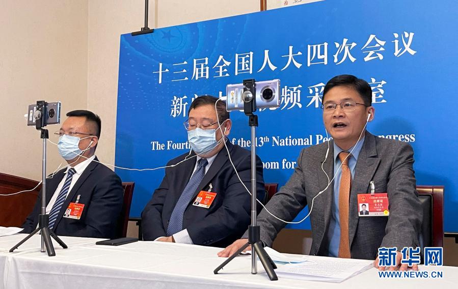 3月6日,全國(guó)人大代表在湖南代表團(tuán)駐地接受視頻采訪(fǎng)。新華社記者 熊爭(zhēng)艷 攝