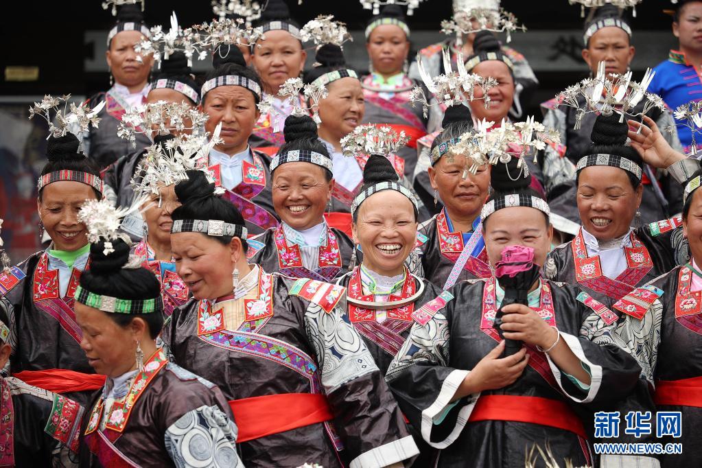 當(dāng)日,貴州省黔東南苗族侗族自治州丹寨縣萬達(dá)小鎮(zhèn)在“第二屆中國丹寨非遺周”中舉辦苗族盛裝巡游、非遺歌舞展演活動(dòng)。
