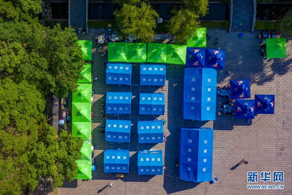 5月24日拍攝的漾濞一中操場上搭建起的帳篷(無人機照片)。新華社記者胡超攝