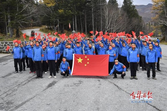 正在天池主峰崗位上默默工作的全國勞動(dòng)模范吳金明,也在東北最高峰為祖國母親送上節(jié)日的祝福。他動(dòng)情地說:“今天是新中國72周年華誕,我祝福偉大祖國經(jīng)濟(jì)更繁榮、人民更幸福、國力更富強(qiáng)。”