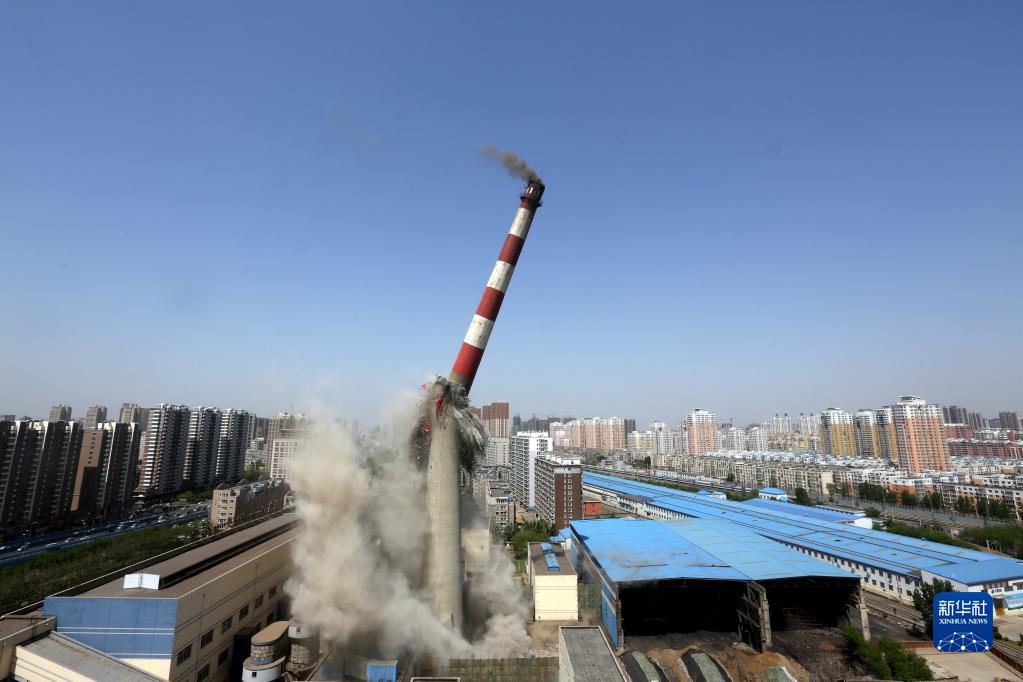 位于沈陽市北一路的一座150米高大煙囪爆破成功(2014年4月28日攝)?!⌒氯A社記者 姚劍鋒 攝