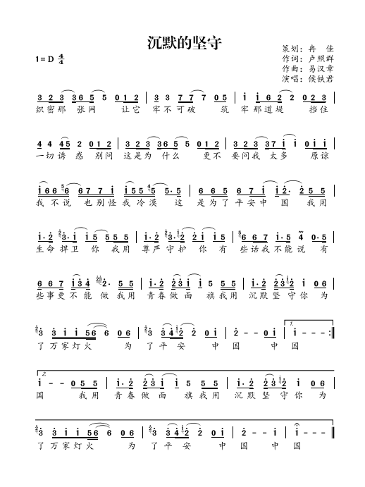 慶祝建黨百年獲獎(jiǎng)歌曲作品選集——《沉默的堅(jiān)守》歌詞。