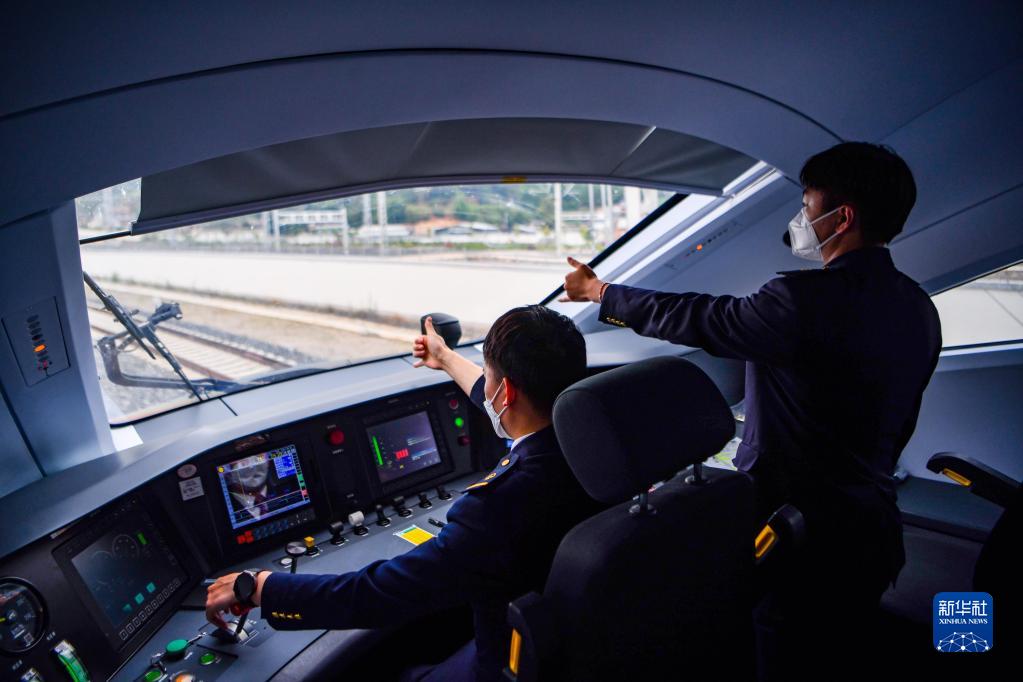 列車司機駕駛復興號列車行駛在中老鐵路上(6月1日攝)。新華社記者 江文耀 攝