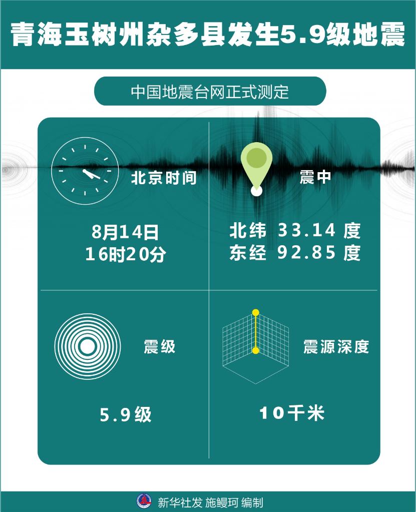 記者從青海省地震局獲悉,8月14日16時(shí)20分,青海省玉樹(shù)藏族自治州雜多縣發(fā)生5.9級(jí)地震,震源深度10千米,震中位于北緯33.14度、東經(jīng)92.85度。目前,暫無(wú)人員傷亡消息。