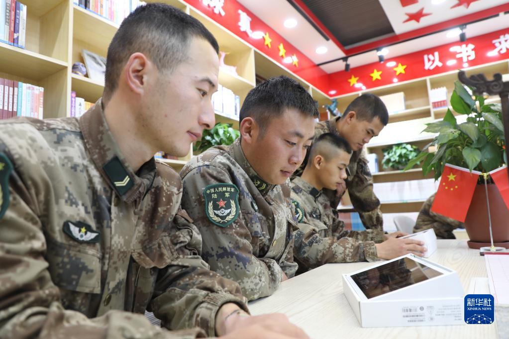 中共中央總書(shū)記、國(guó)家主席、中央軍委主席習(xí)近平24日下午出席軍隊(duì)領(lǐng)導(dǎo)干部會(huì)議時(shí)發(fā)表的重要講話,在解放軍和武警部隊(duì)引起強(qiáng)烈反響。這是新疆軍區(qū)奧爾托蘇邊防連官兵在圖書(shū)室認(rèn)真學(xué)習(xí)習(xí)主席重要講話(10月25日攝)。新華社發(fā)(劉南松 攝)