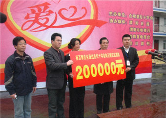 楊百章通過合陽縣紅十字會向玉樹災區(qū)捐款20萬元